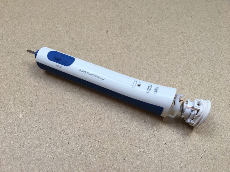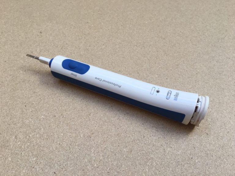 Diese Anleitung zeigt den Akkuwechsel bei einer elektrischen Zahnbürste anhand der Oral-B Professional Care 500. Der genaue Typ dieses Modells lautet 4729. Die Schritte werden bei anderen Modellen sehr ähnlich ausfallen und somit ebenfalls eine gute Hilfe darstellen.