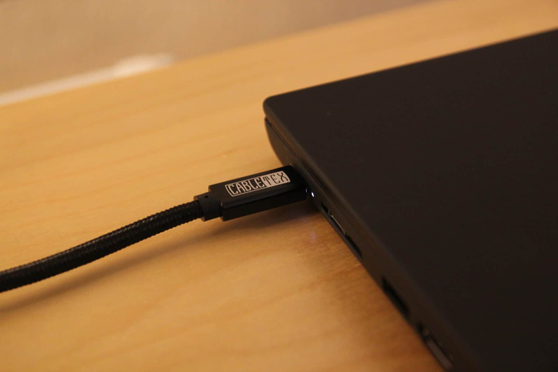 Da viele Hersteller keine gesicherten USB-C Spezifikation angeben, ist nur die Thunderbolt 3 Kompatibilität ein Garant für die korrekte Funktion. Ein passendes 2m Thunderbolt 3 kompatibles Kabel gibt es von Cabletex. Durch die Überlänge erlaubt es technisch bedingt 10 Gbit/s statt maximal 40 GBits/s Datenrate. Für Monitore mit USB-C Anschluss ist ersteres aber ohnehin das Maximum. Kabel mit maximaler TB3 Spezifikation erlauben nur etwa 1m Länge.