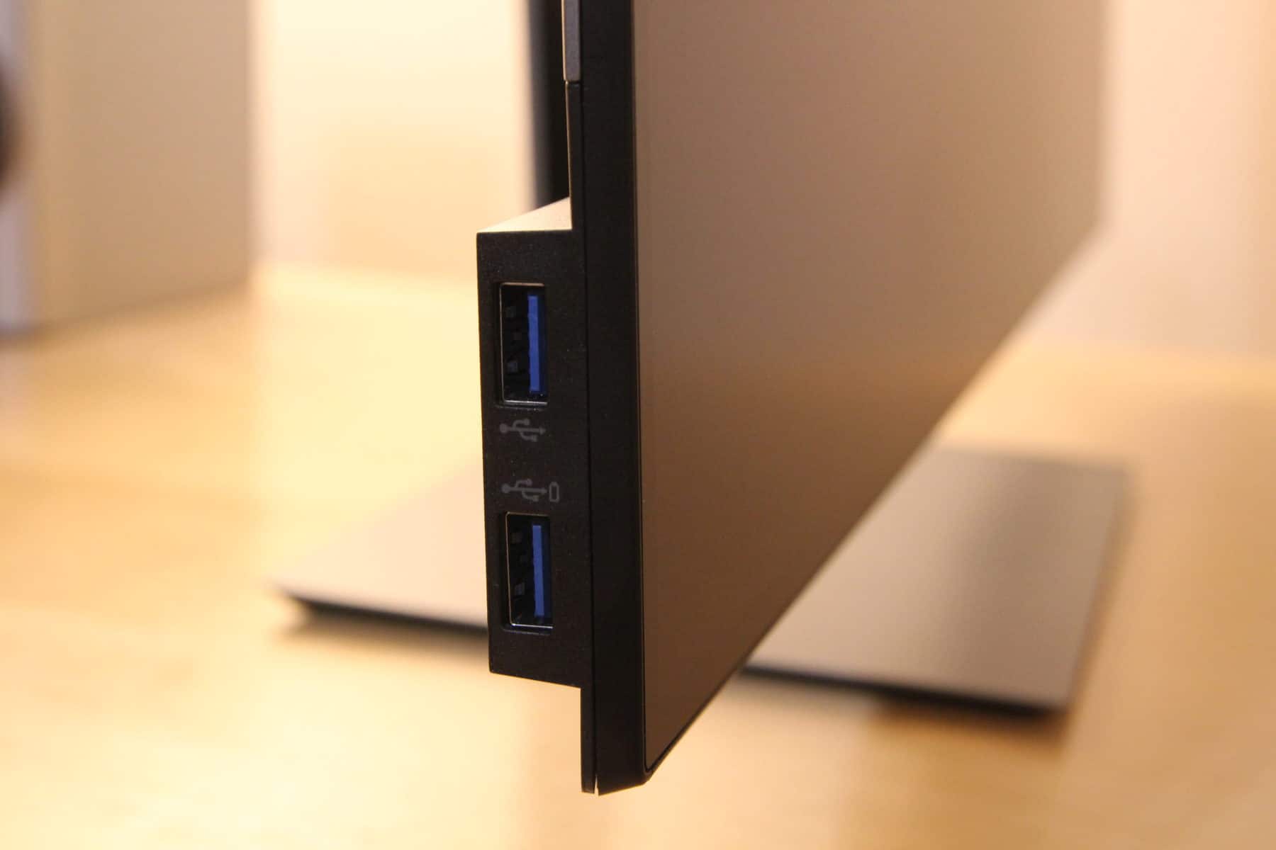 Der Bildschirm besitzt keine Lautsprecher, aber eine 3.5 mm Klinkenbuchse (Line Out) für den Anschluss aktiver Lautsprecher. Dieser wird ebenfalls vom USB-C Port gespeist und funktioniert auf Anhieb. Natürlich muss dazu die Tonausgabe auf den Dell Monitor eingestellt sein.