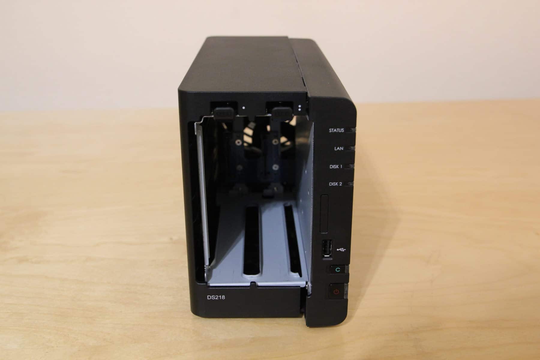 Als Grundlage für diesen Umbau dient eine Synology DS218 (ohne Plus) mit 2 GB RAM, BRTFS und 4K H.265 Echtzeit Transcoding Support. Empfehlenswert für den Dauerbetrieb dazu sind CMR Festplatten aus der WD Red Pro Serie. Als Alternative bieten sich auch Seagate IronWolf Pro an.