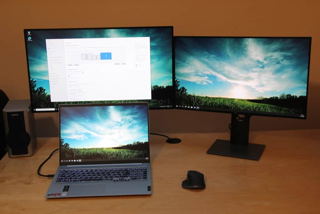 Es lassen sich ein 4K, zwei WQHD oder 3 FHD Displays mit 60Hz ansteuern. Dank USB-C mit DisplayPort und DaisyChain läuft alles über einen einzigen Anschluss am Notebook.