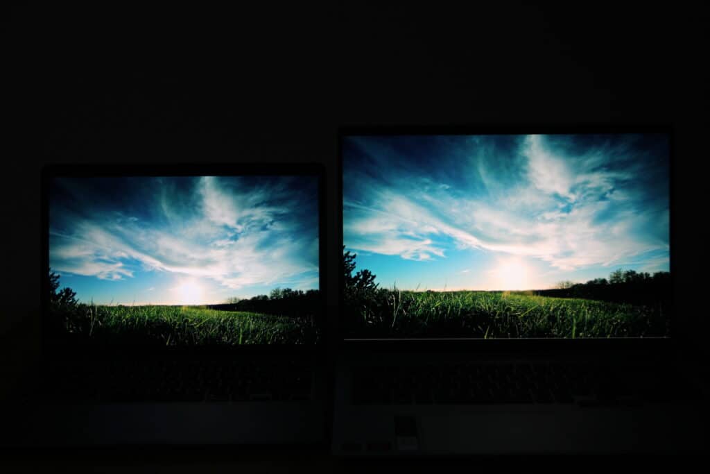 Das 16" Panel (2560x1600 Pixel) legt mit 189dpi (Pixel pro Zoll) gegenüber einem 15" Full-HD (1920x1080 Pixel) mit lediglich 141dpi deutlich an Schärfe zu.