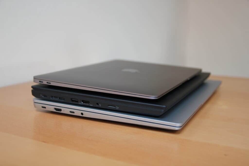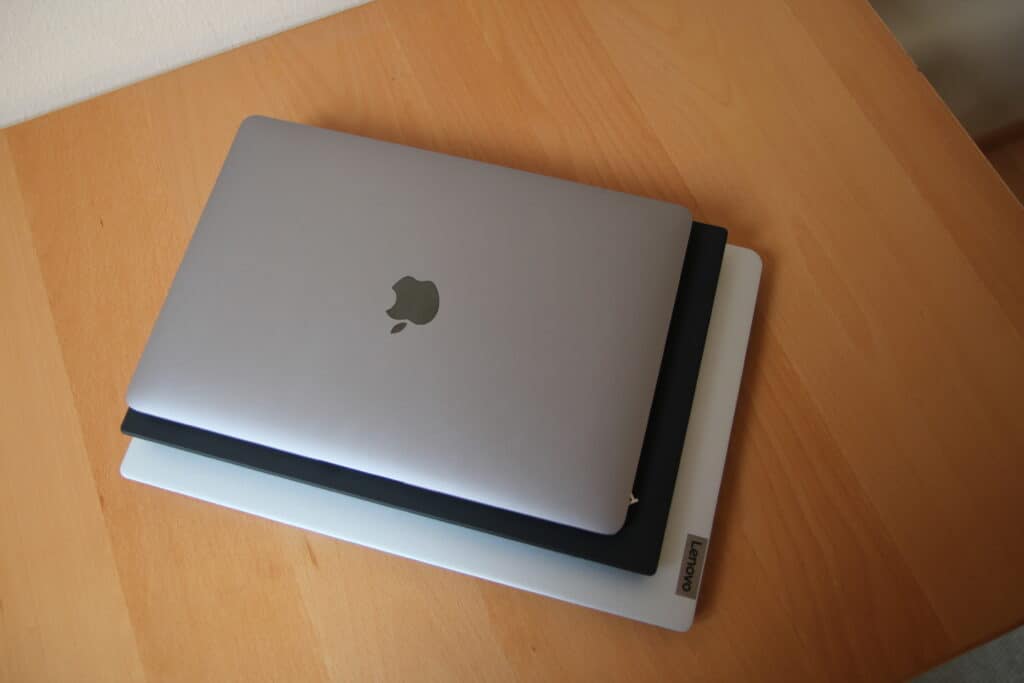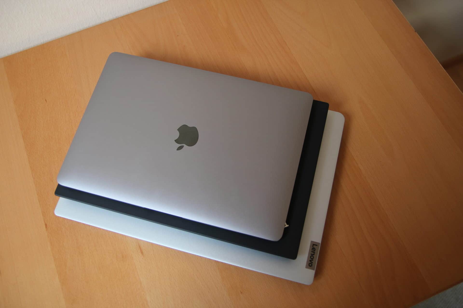 Nachfolgend ein Größenvergleich zwischen Lenovo IdeaPad 5 Pro 16", ThinkPad T495 14" und MacBook Air M1 13.3".