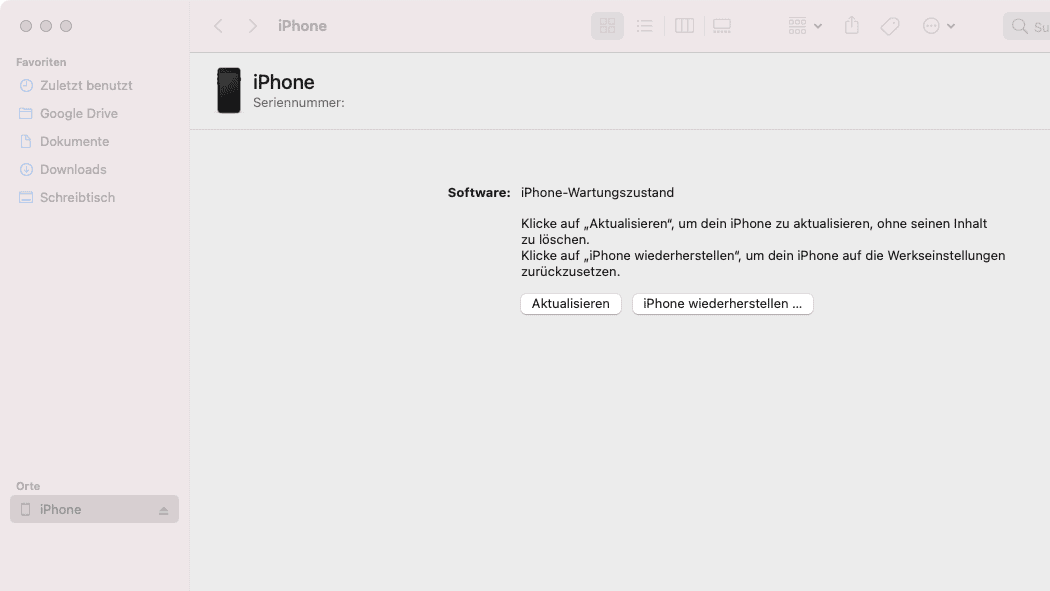 Im Wiederherstellungsmodus (Device Firmware Update Mode) lässt sich das iPhone (und iPad) Firmware Update über einen Computer anzustoßen.