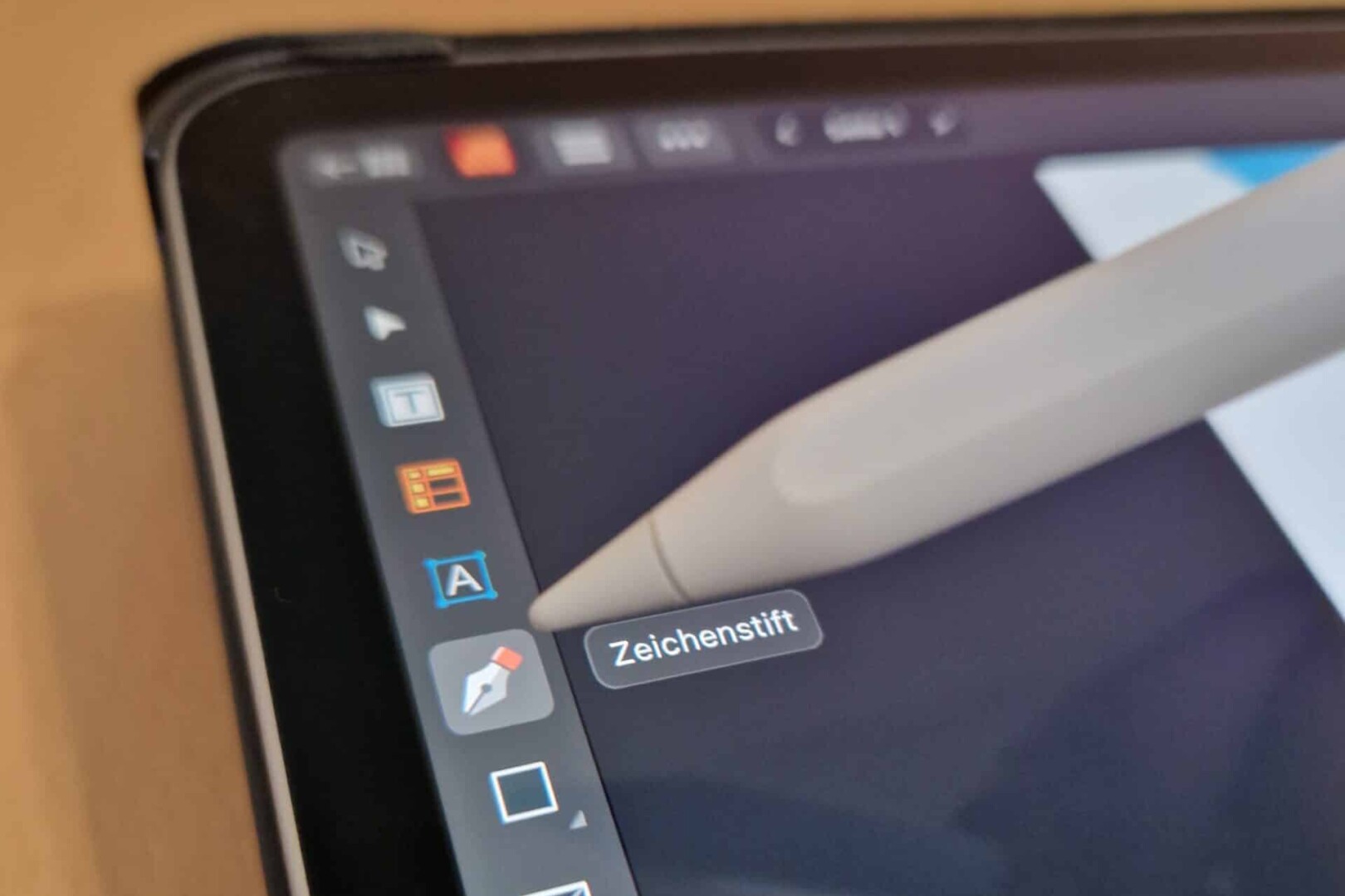 4. In Affinity Publisher am iPad werden die Namen der einzelnen Tools per Hover eingeblendet, wenn der Stift über den zugehörigen Symbolen verweilt.
