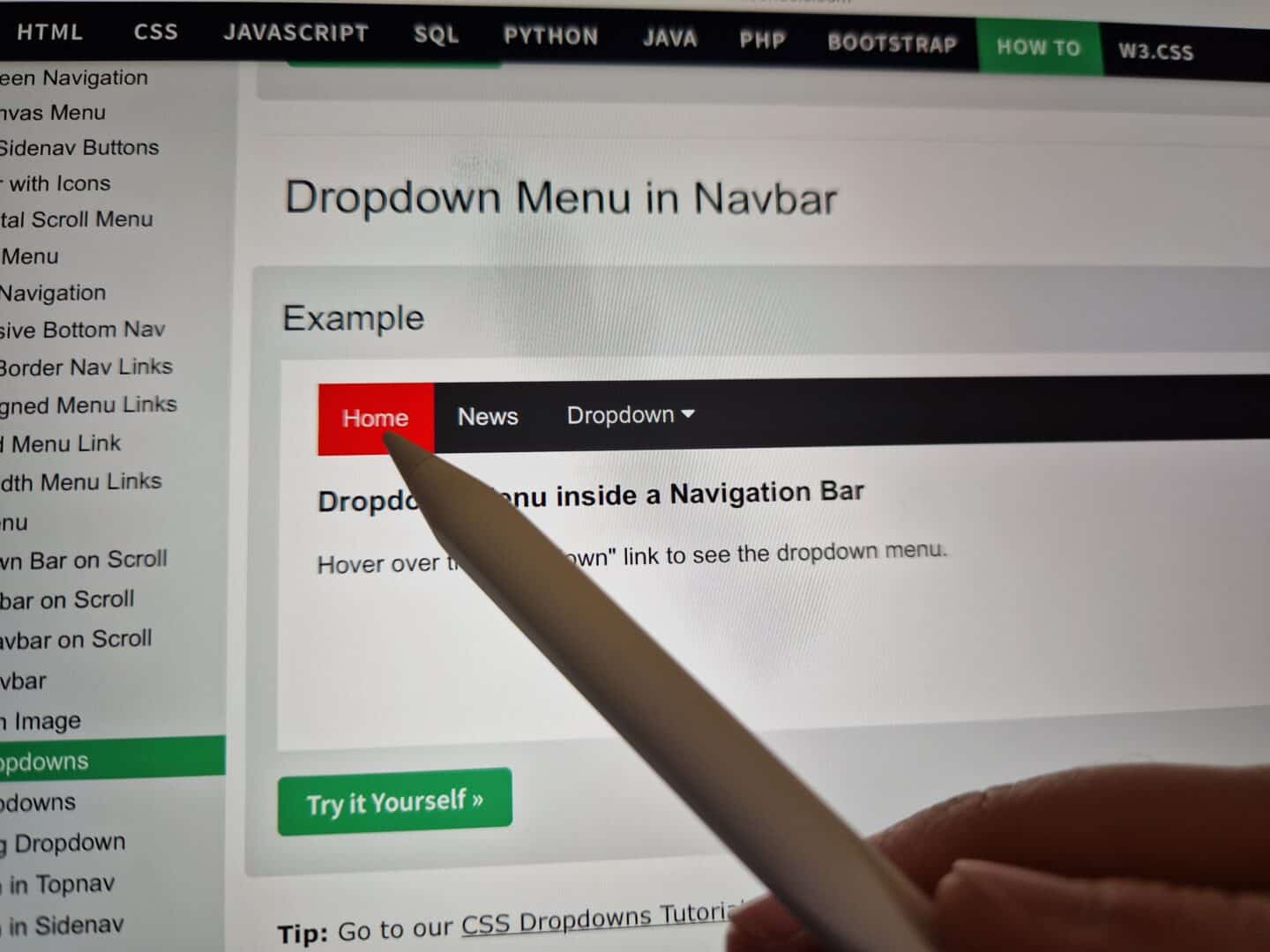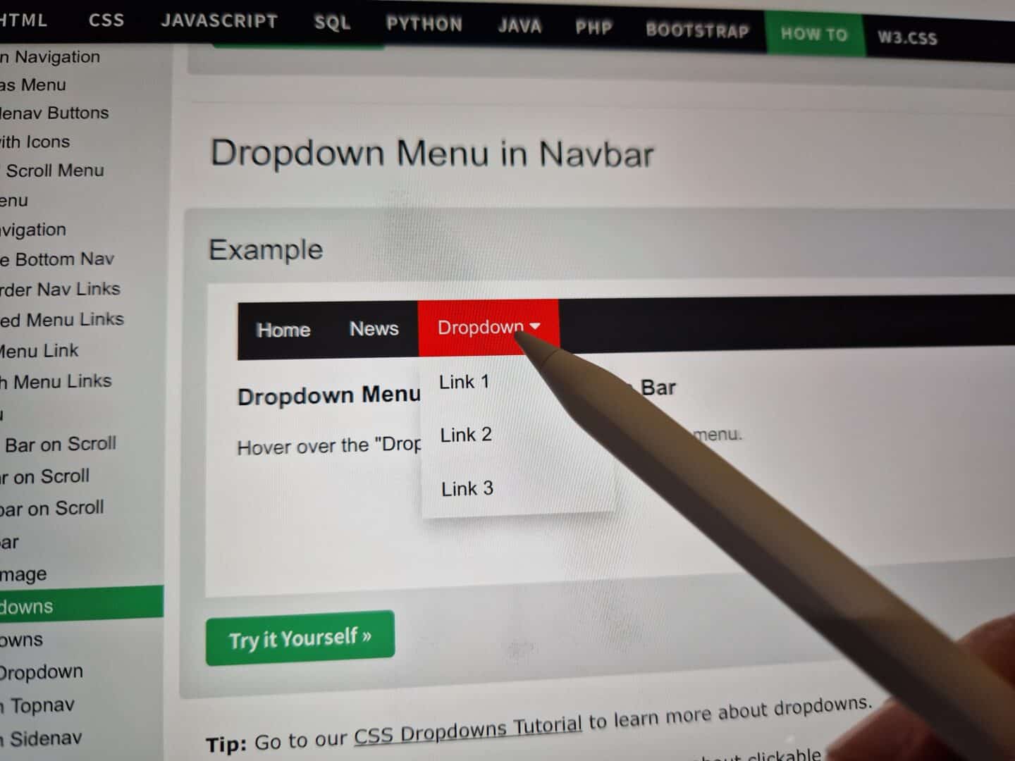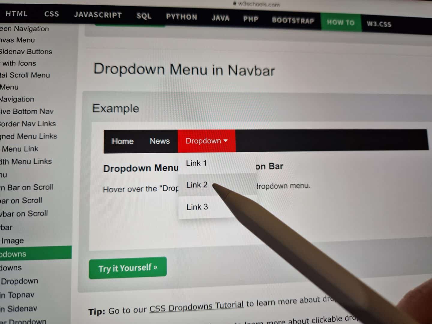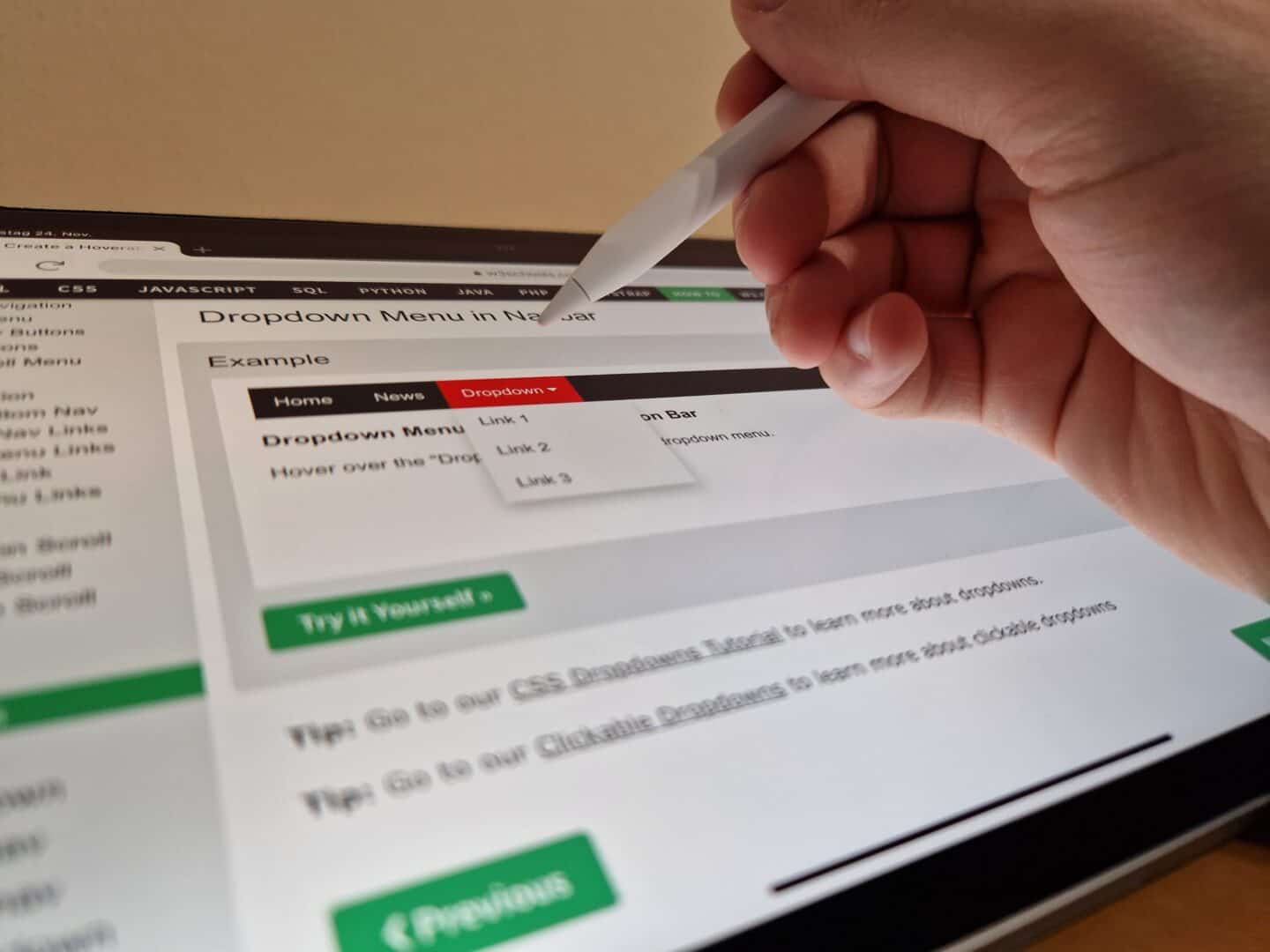 2. Untermenüs auf Website öffnen sich, wie am Notebook gewohnt, ohne Klick, einfach nur durch Schweben der Stiftspitze über Navigationsleiste.