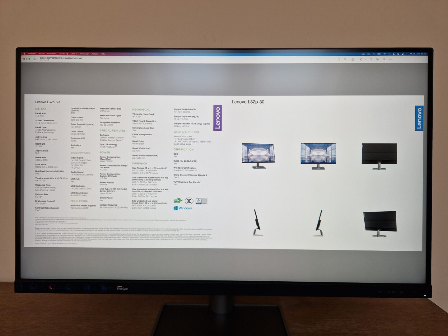 Zum aktuellen Stand im Juni 2022 ist der Lenovo L32p-30 der mit Abstand preiswerteste 4K IPS-Monitor mit 32″ und integrierter Lademöglichkeit für Notebooks. Für weniger als 400€ gibt es sonst ausschließlich ein paar dunklere Bildschirme mit VA-Panel und schlechteren Farben.