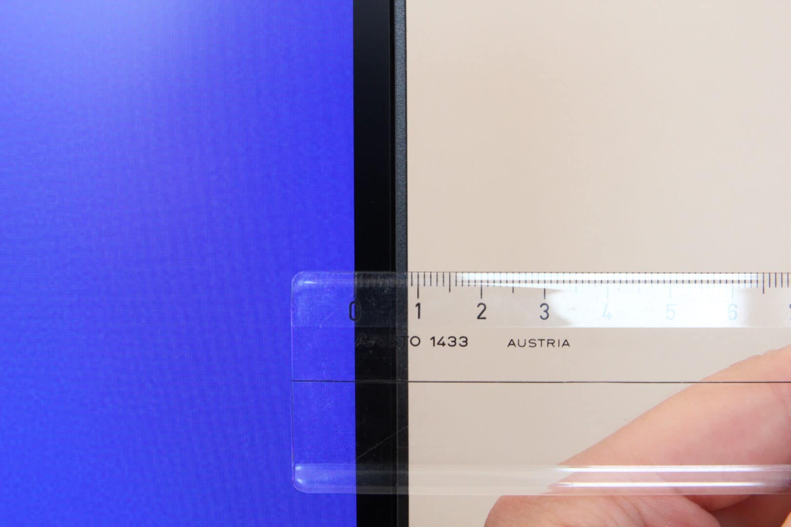 Der Monitor wiegt rund 7,8 kg, ist 714 mm breit und mit Standfuß 523 mm hoch.