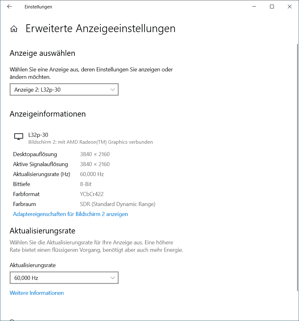 Ein Unterschied ist auf den ersten Blick nicht erkennbar. Die folgenden Screenshots aus den Windows Monitoreinstellungen zeigen die automatisch ermittelten Displayeinstellungen, abhängig der aktiven USB Spezifikation.